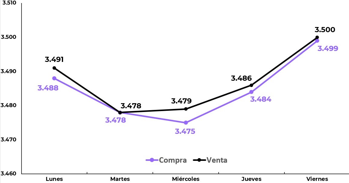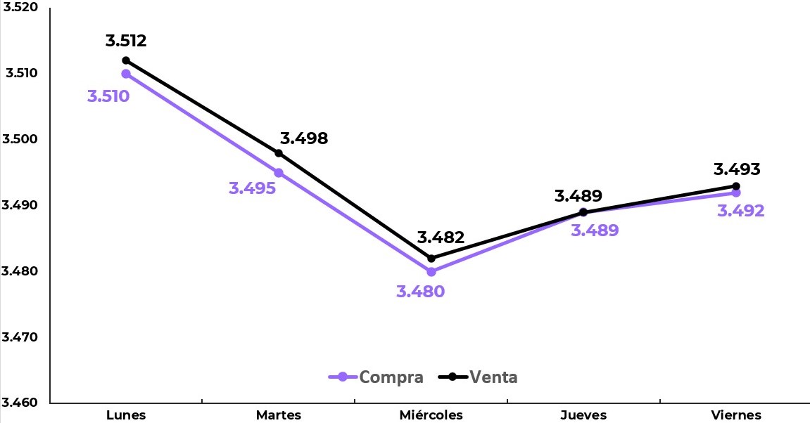 El tipo de cambio en Perú culminó la semana en S/ 3.523, registrando una caída de 0.28 % frente al viernes anterior. Esta leve depreciación del dólar refleja la creciente incertidumbre en torno a la política monetaria de Estados Unidos y confirma que los movimientos internacionales siguen siendo el principal motor detrás de la cotización del billete verde en nuestro país.