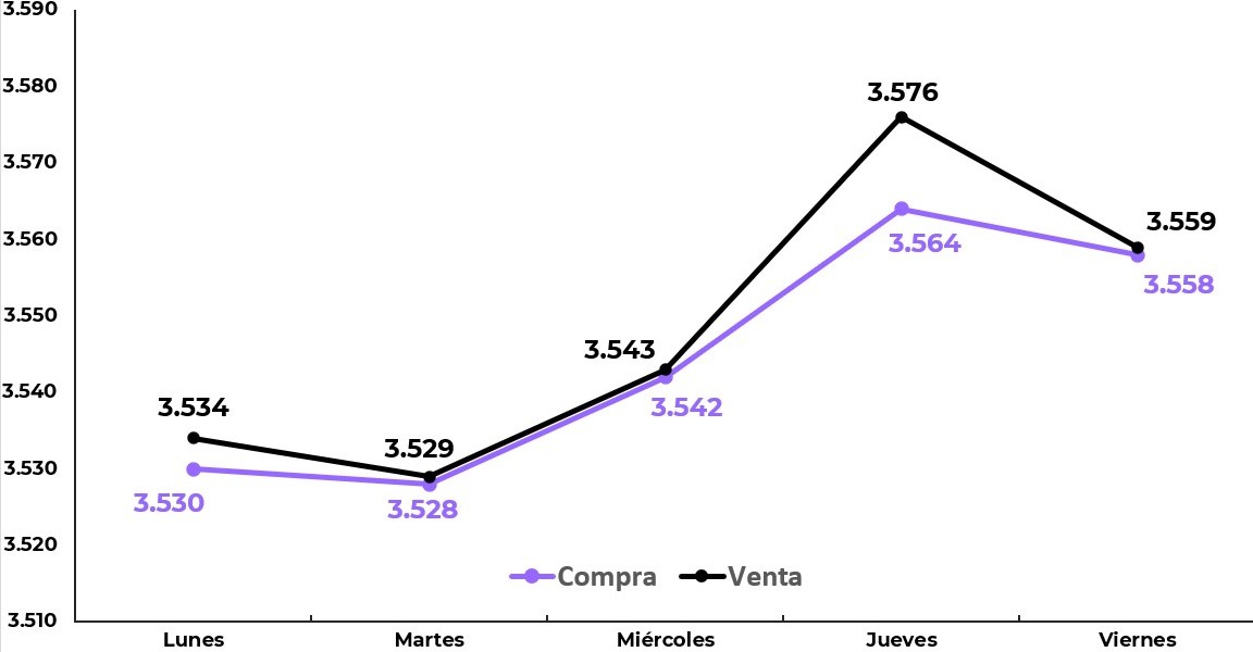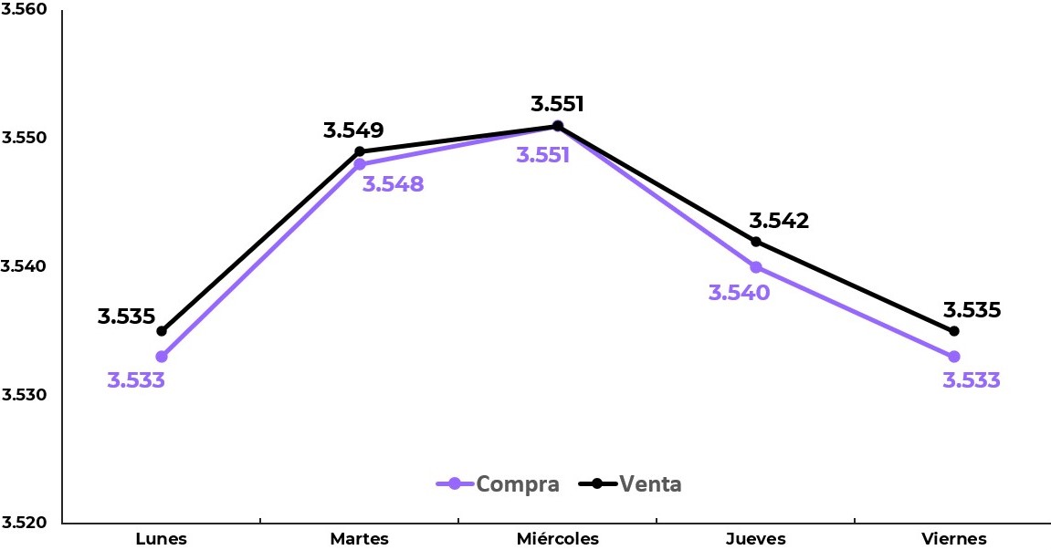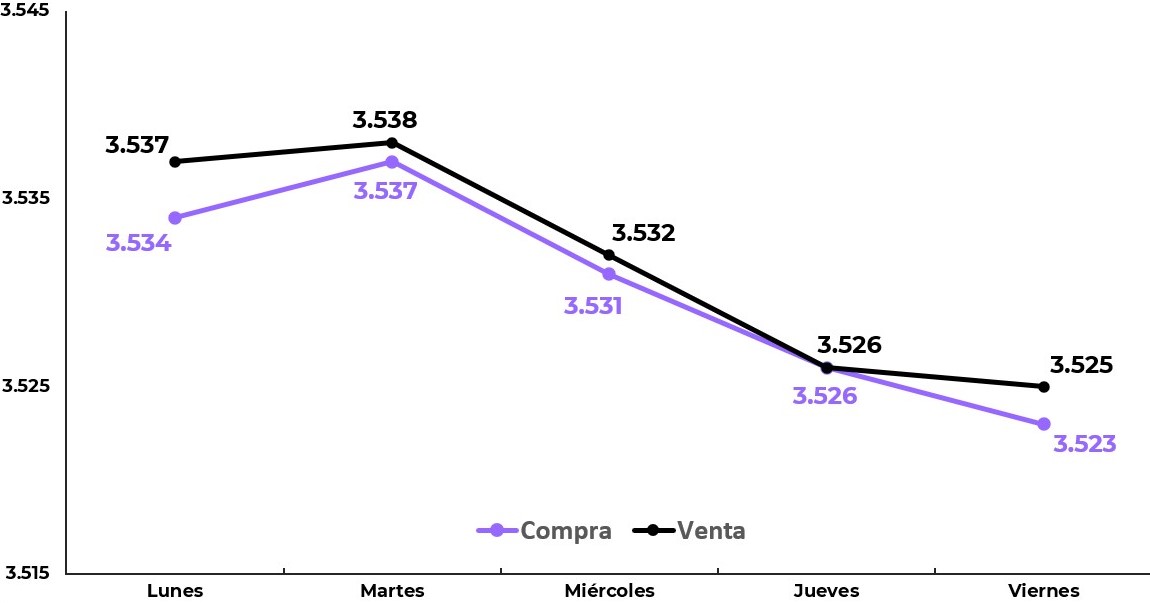 Esta semana se registraron un total de 855 operaciones que representan 1,191 millones de dólares cambiados en el mercado interbancario.