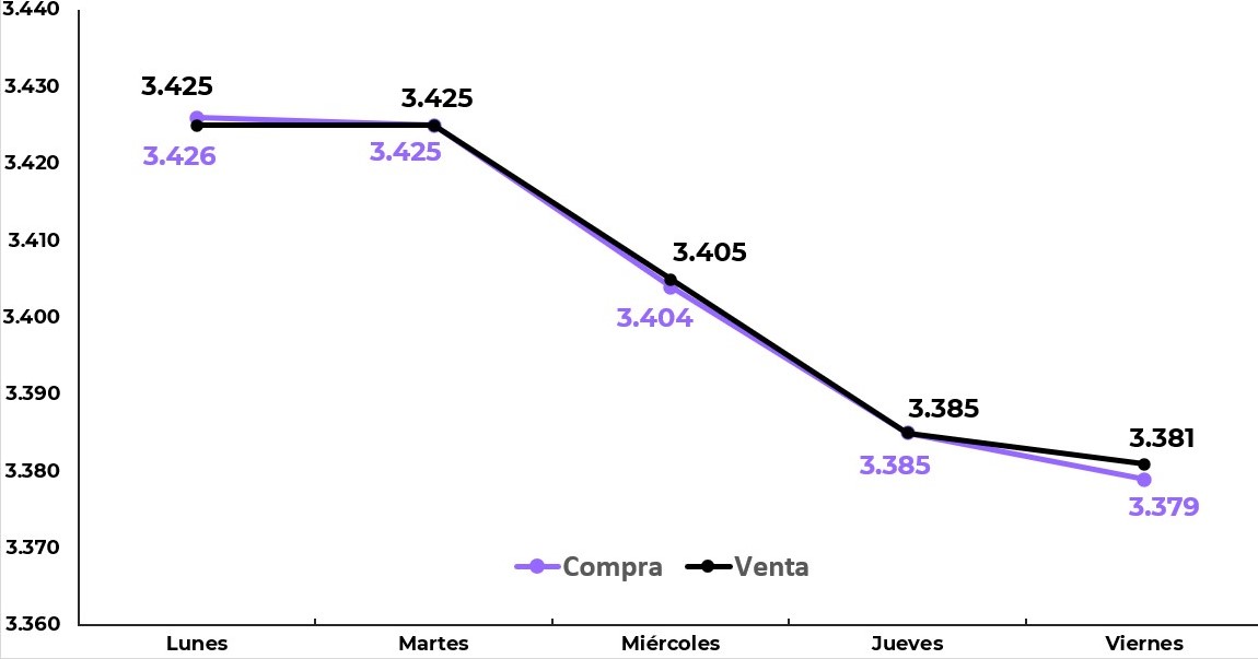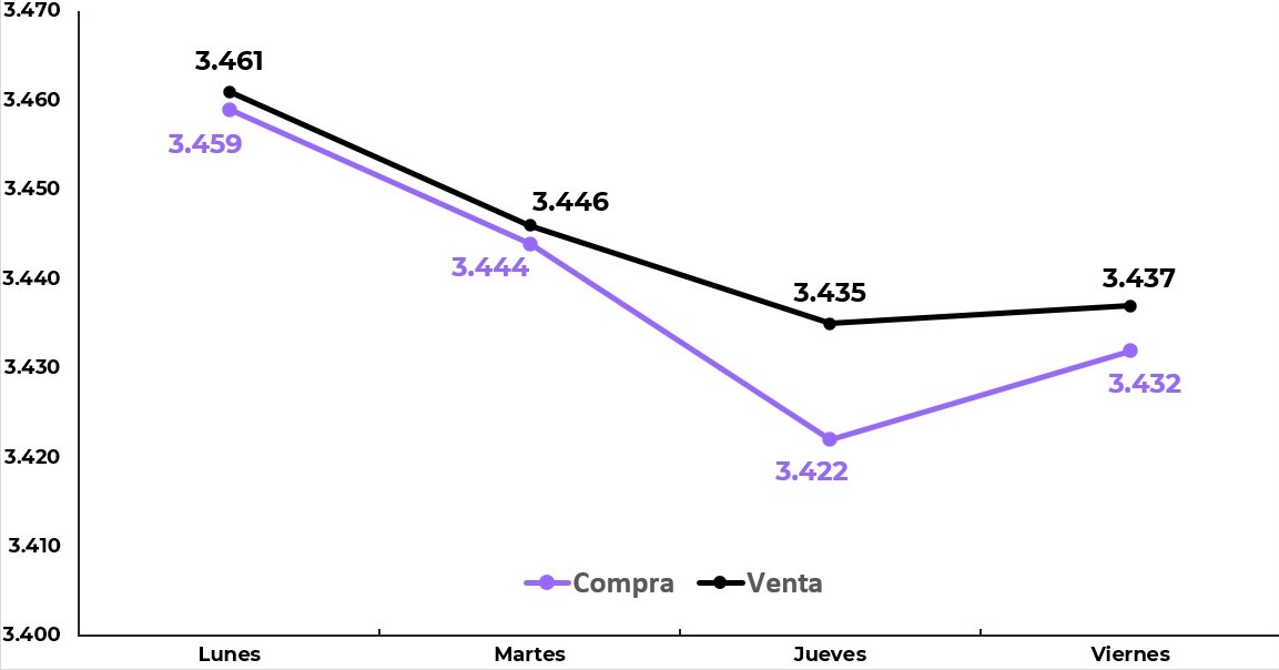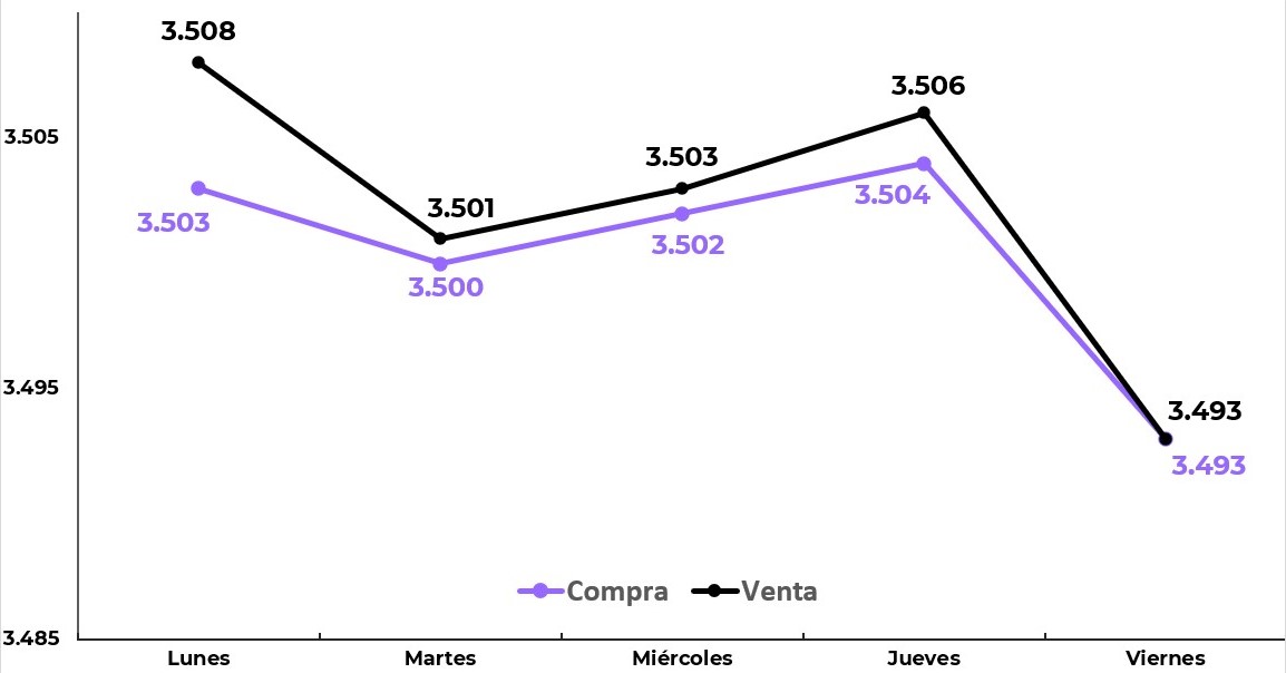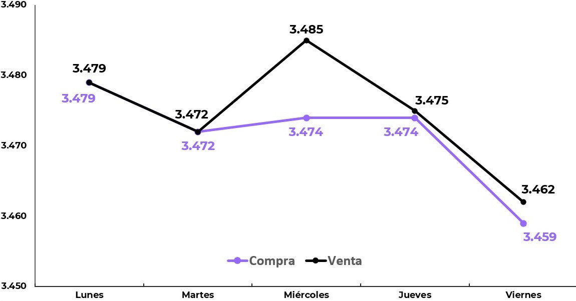 Esta semana se registraron un total de 1,080 operaciones que representan 1,789 millones de dólares cambiados en el mercado interbancario.